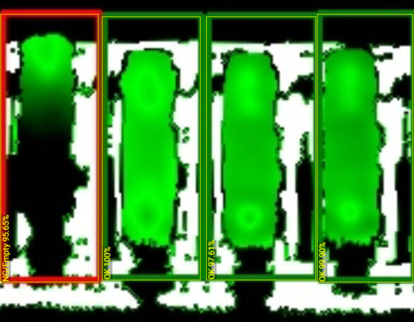 Since the batteries were always positioned consistently, PEKAT VISION’s Classifier module was ideal for the task. The software evaluated each depth map and identified four possible outcomes: